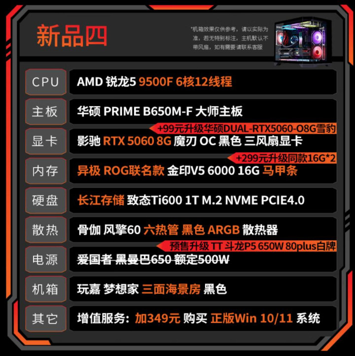 最后我们找到了两套较为热门的组装机产品,搭配的都是RTX 5060显卡以及1TB SSD,其中锐龙5 9500F组装机就算升级成32GB内存,总价也不过5198元,可是比酷睿i5-14600KF组装机的5999元,便宜了801元。两者之所以有如此明显的价差,原因主要有以下几点。